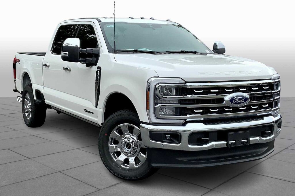 ENGINE: 6.7L 4V OHV POWER STROKE V8 TURBO DIESEL B20 manual push-button engine-exhaust braking and Operator Commanded Regeneration (OCR), 250 Amp Alternator, 34 Gallon Fuel Tank, 3.31 Axle Ratio, Dual AGM 68 AH Battery, LARIAT ULTIMATE PACKAGE Pro Trailer Hitch Assist, Ford Co-Pilot 360 Assist 2.0, 360-degree camera, rear view camera and reverse brake assist, Pre-Collision Assist, Automatic Emergency Braking (AEB), pedestrian detection, forward collision warning, dynamic brake support and intersection assist, Post-Collision Braking, Lane-Keeping System, lane-keeping alert, lane-keeping aid and driver alert, Front & Rear Parking Sensors, Automatic High Beam, Adaptive Cruise Control w/Stop-and-Go, lane centering and predictive speed assist, 4-Way Adjustable Headrests, Power-Sliding Rear-Window w/Defrost, Tailgate Step & Handle, Head-Up Display, Power-Deployable Running Boards, Pro Trailer Backup Assist, trailer reverse guidance, Radio: B&O Unleashed Sound System by Bang & Olufsen, HD Radio w/14 speakers, TWIN PANEL POWER MOONROOF map lights and moonroof switches, CHROME PACKAGE Unique Chrome Mirror Caps, Tires: LT275/65Rx20E BSW Automatic Transmission, Spare may not be the same as road tire, Wheels: 20 Chrome PVD Aluminum, Chrome Door Handles, 6 Angular Bright Anodized Step Bars, Chrome Exhaust Tip, STAR WHITE METALLIC TRI-COAT, PRO POWER ONBOARD - 2KW: dual alternators 12V 250 Amp + 24V 150 Amp, FX4 OFF-ROAD PACKAGE: Hill Descent Control, Off-Road Specifically Tuned Shock Absorbers, front/rear, Transfer Case & Fuel Tank Skid Plates, Unique FX4 Off-Road Box Decal, ELECTRONIC-LOCKING W/3.31 AXLE RATIO, UPFITTER SWITCHES (6): Located in overhead console, TRANSMISSION: TORQSHIFT 10-SPEED AUTOMATIC SelectShift and selectable drive modes: normal, eco, slippery roads, tow/haul and off-road.